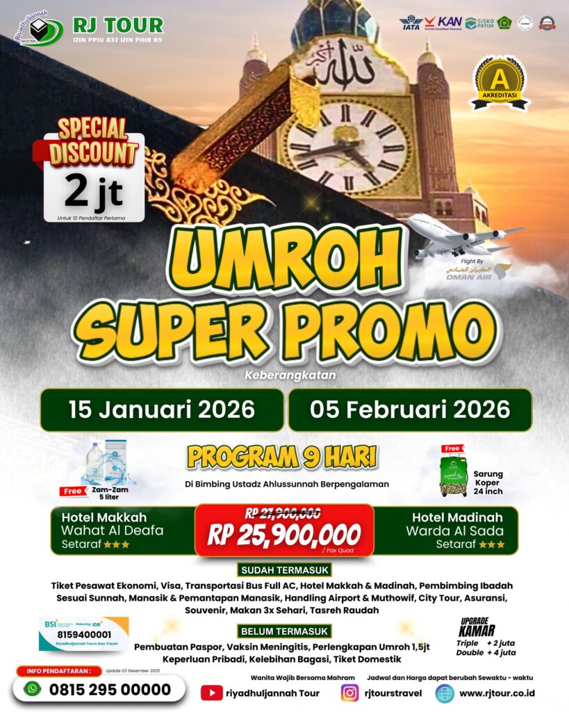 * Jamaah Wanita wajib bersama Mahram* Jadwal dapat berubah sewaktu waktu
