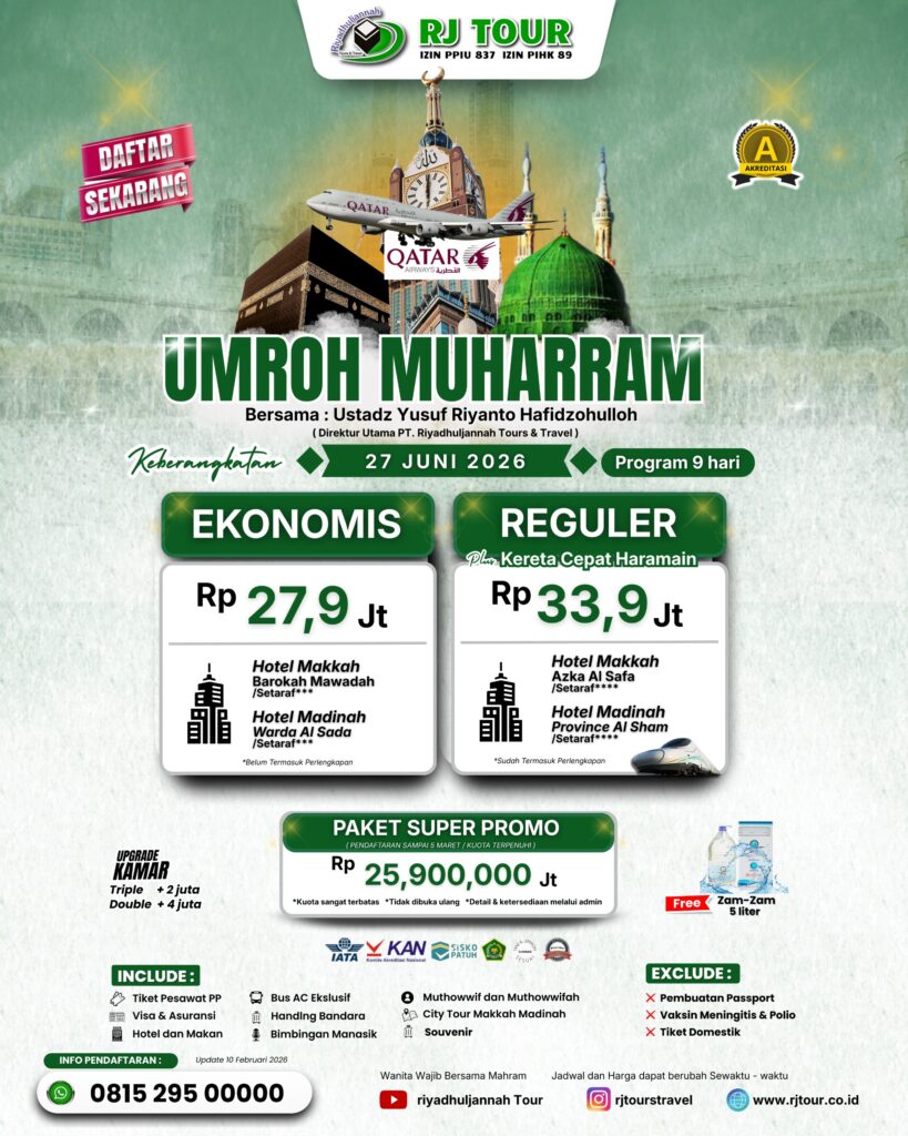 * Jamaah Wanita wajib bersama Mahram* Jadwal dapat berubah sewaktu waktu